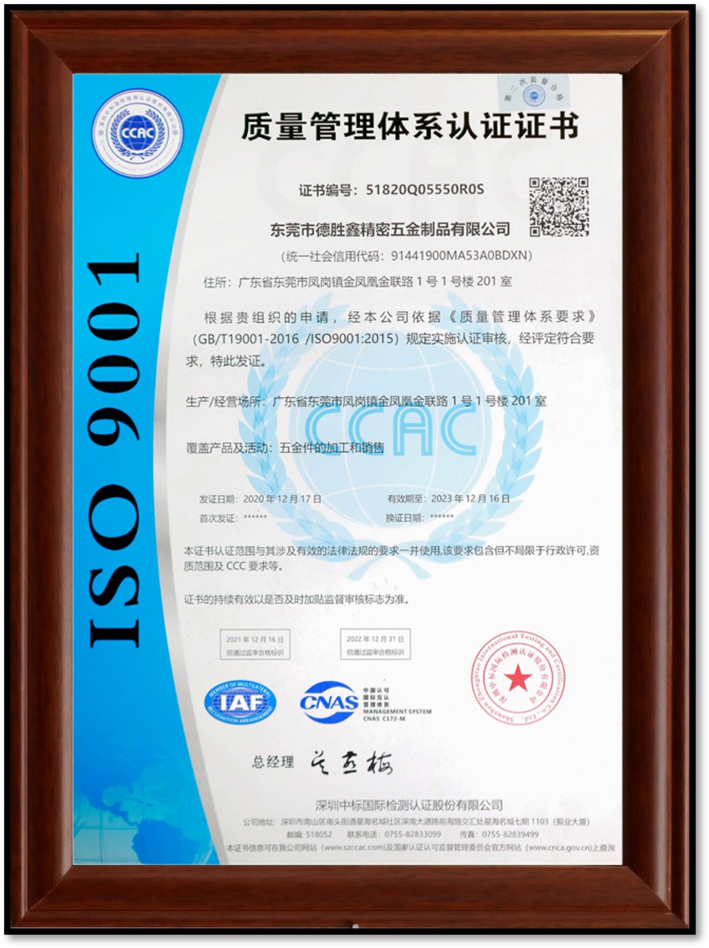 • 質(zhì)量證書